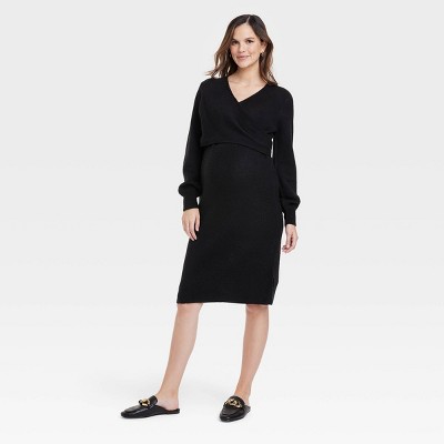 Black Maternity Short Dress with Ruched Sides. Up to 4 cash back Details A sweater knit maternity maxi dress featuring a rounded neckline long sleeves and side slits. 55 Acrylic 45 Polyamide.